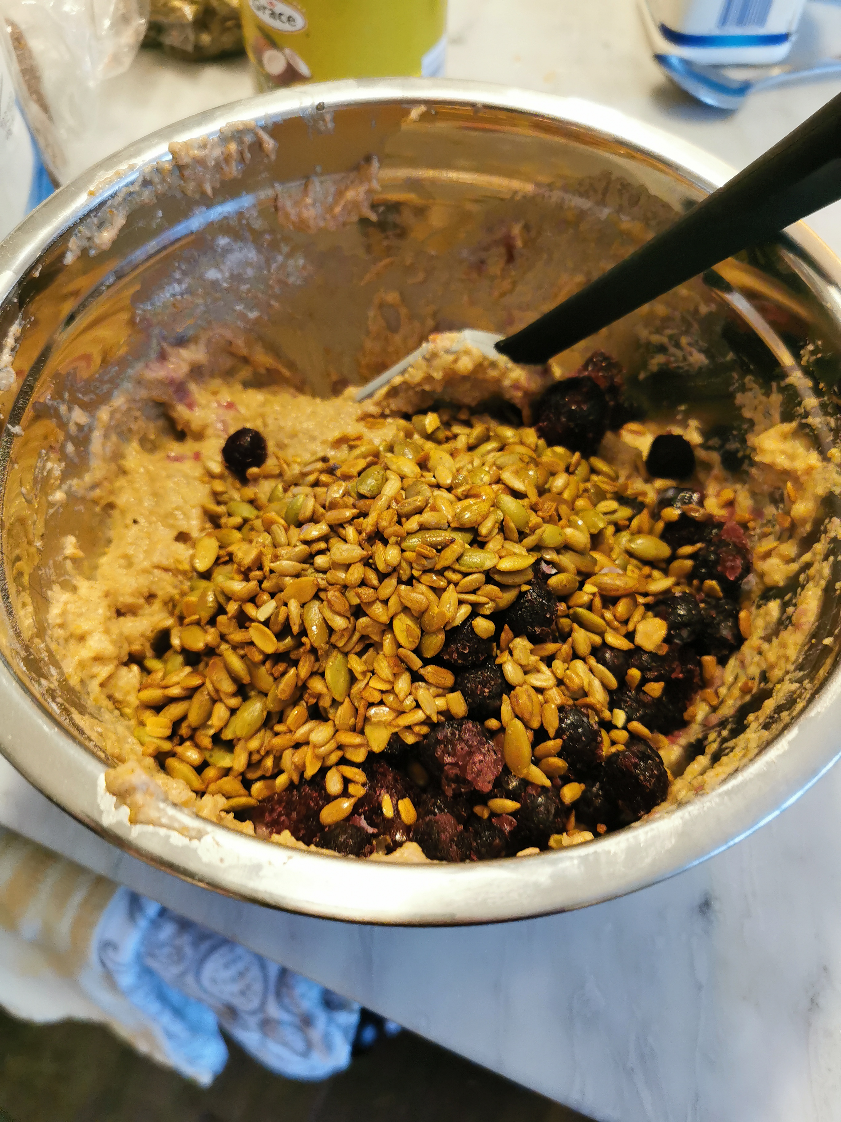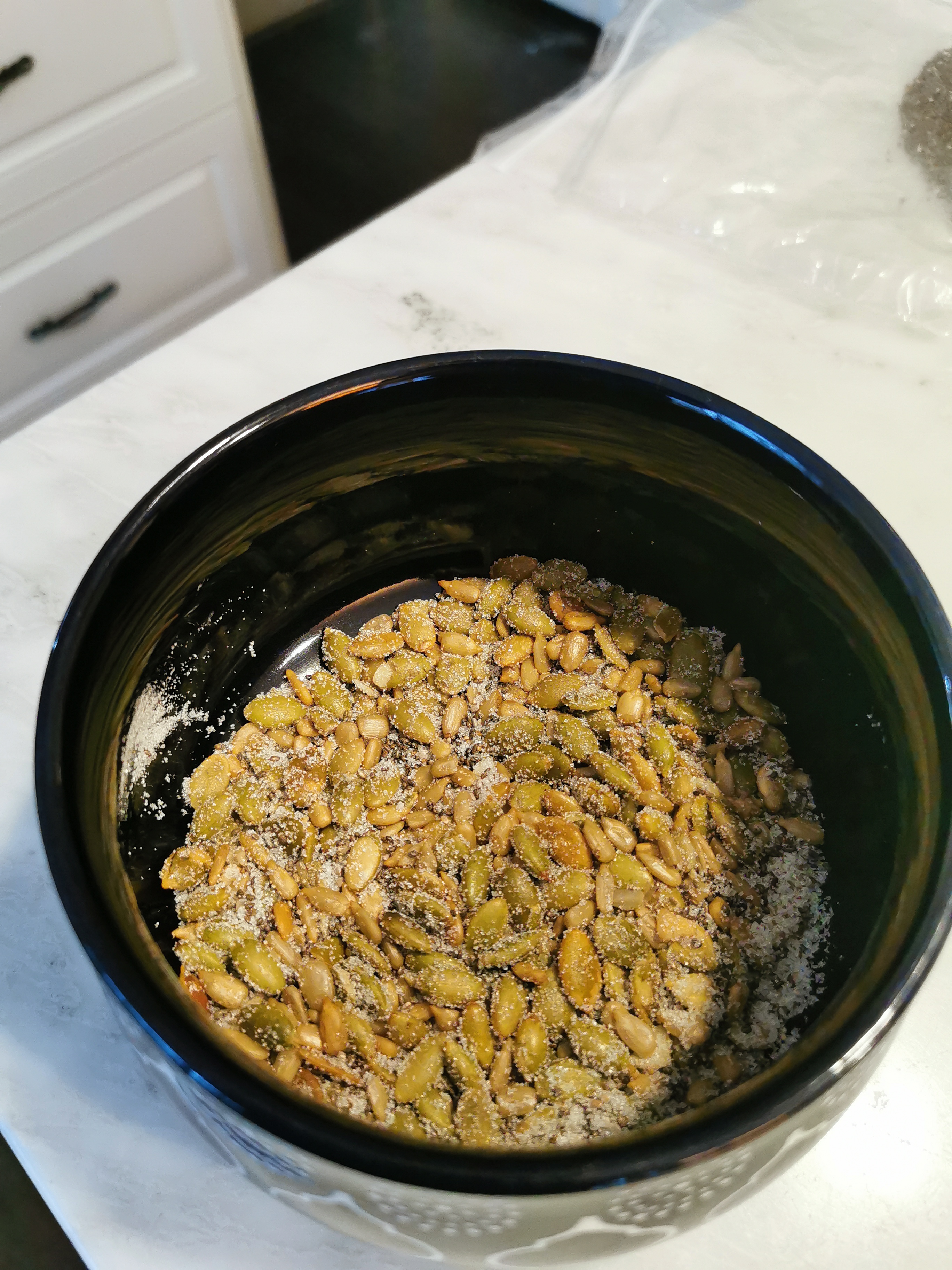 Sunflower seeds, chia seeds, pumpkin seeds, and sugar all for the topping